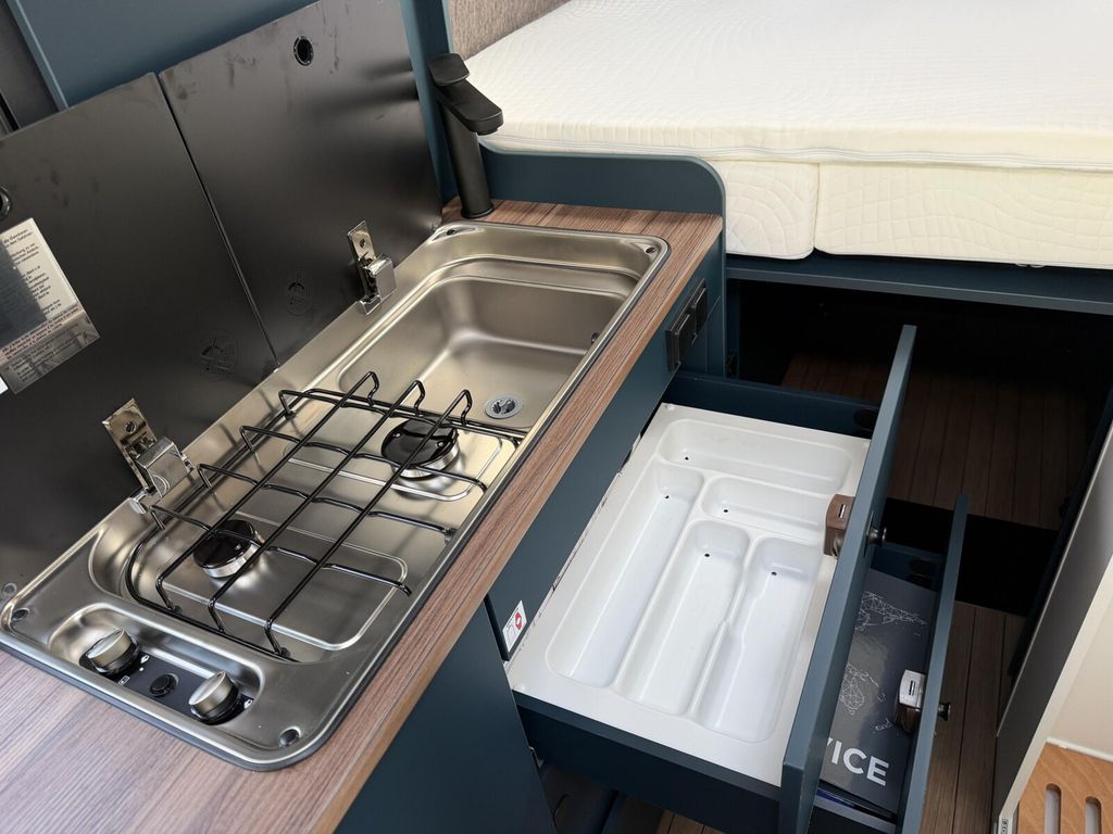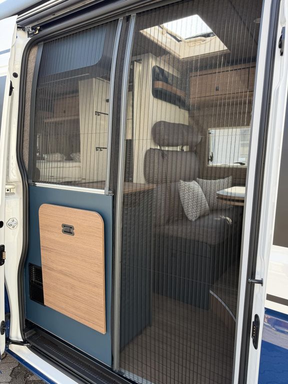 - Camping-Paket (Faltverdunklung Frontscheibe & Verdunklung Seitenscheiben Fahrerhaus, Zwei zusätzliche Multifunktions-Akkuleuchten, Zwei Kissen farblich passend zum Wohnraum, Matratzentopper, Magnetischer Vergrößerungsspiegel)