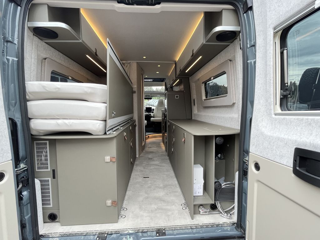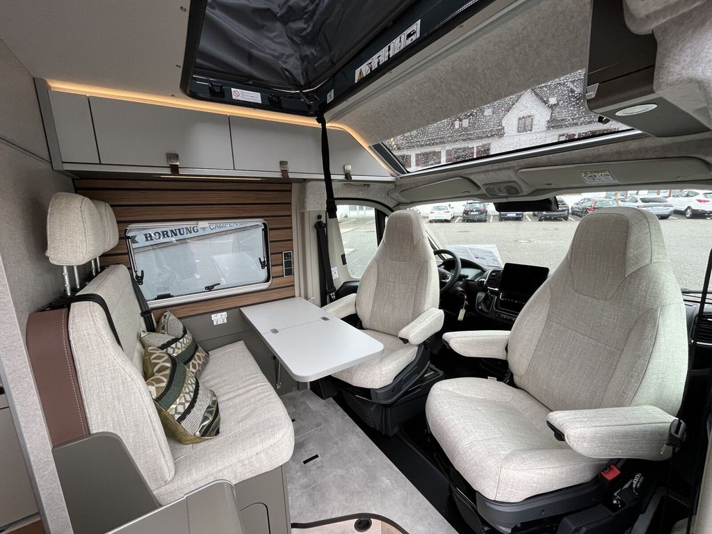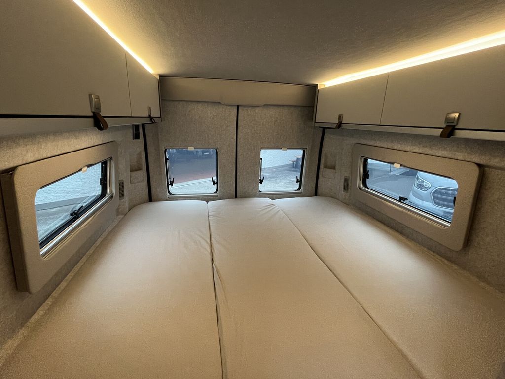 - Wohnkomfort Paket (Skyview Fenster Fahrerhaus inkl. Verdunklung, Ambient-Light-System: Mehr-Ebenen Lichtsystem mit dynamischer und individueller Steuerung der Beleuchtung (inkl. Lichttemperatur) sowie stimmungsvoller Sockelbeleuchtung, Wohnwelt "HOME" (2 Kissen und Stofftasche), Spannbettlaken nach Maß für Heckbetten individuell an Matratzen angepasst, Einlegeboden mit Korkoberfläche)