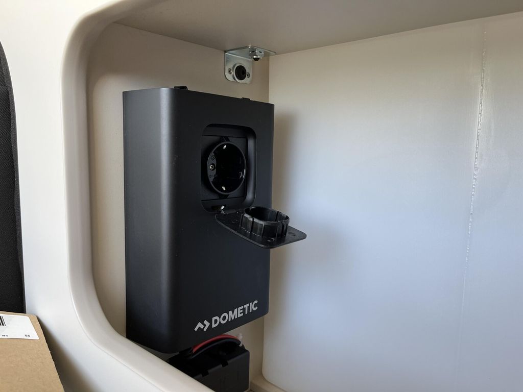 - Stauraumpaket (Höherlegung Heckbett (ca. 100 mm) plus Wechselrichter (230 V) 350 Watt im Heck (nur für Columbus 600 D) z.B. für Transport & Laden von eBikes im Innenraum)