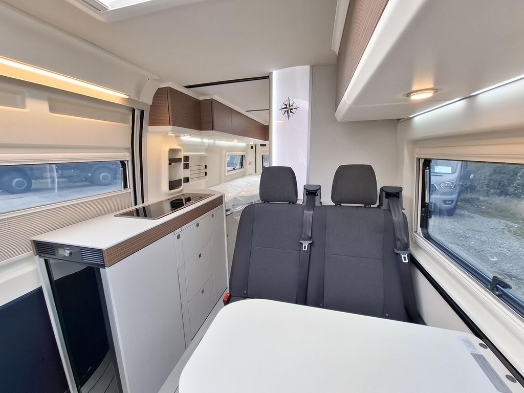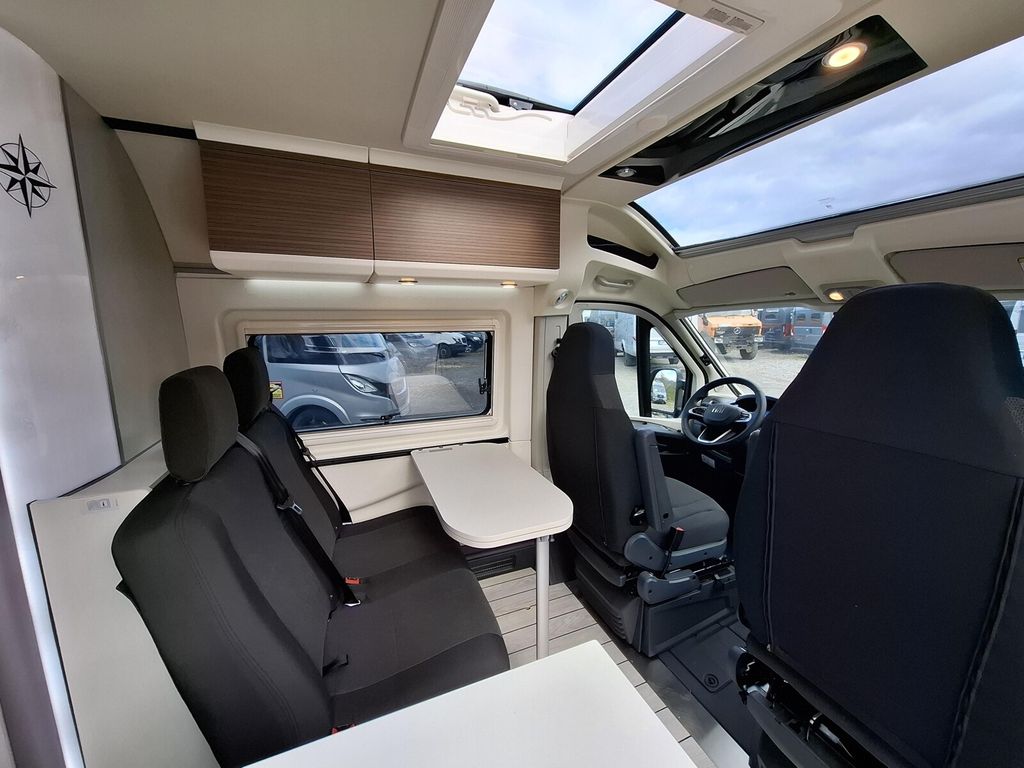 - Columbus Premium Paket (Außendusche warm / kalt inkl. Duschkopf und Saugfuß, Duscheinleger im Yachtdesign für die Nasszelle, Sitzheizung für Fahrer- und Beifahrersitz, Winterpaket (Abwassertank beheizt, Isolierung von Heck-und Schiebetür, Isoliermatte für Hecktür, Isoliermatte für Frontscheibe, zusätzlicher Konvektor im Bereich Fahrerhaus, Fußbodenheizung inkl. beheizter Duschtasse, Plugtronic (Heizbetrieb elektrisch 230V), Teppich Fahrerhaus)