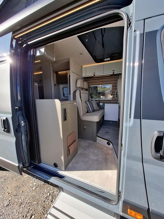 - Wohnkomfort Paket (Skyview Fenster Fahrerhaus inkl. Verdunklung, Ambient-Light-System: Mehr-Ebenen Lichtsystem mit dynamischer und individueller Steuerung der Beleuchtung (inkl. Lichttemperatur) sowie stimmungsvoller Sockelbeleuchtung, Wohnwelt "HOME" (2 Kissen und Stofftasche), Spannbettlaken nach Maß für Heckbetten individuell an Matratzen angepasst, Einlegeboden mit Korkoberfläche)