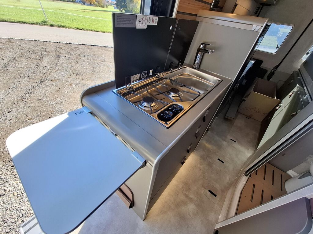 - 6 KW Diesel-Warmluftheizung mit 10l Warmwasserboiler, 1.800 Watt Elektroheizstab und kompakter Gaskasten für 6kg-Gasflasche sowie 3 Stauraum-Schubladen