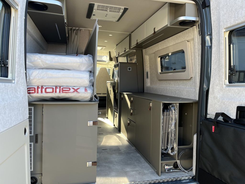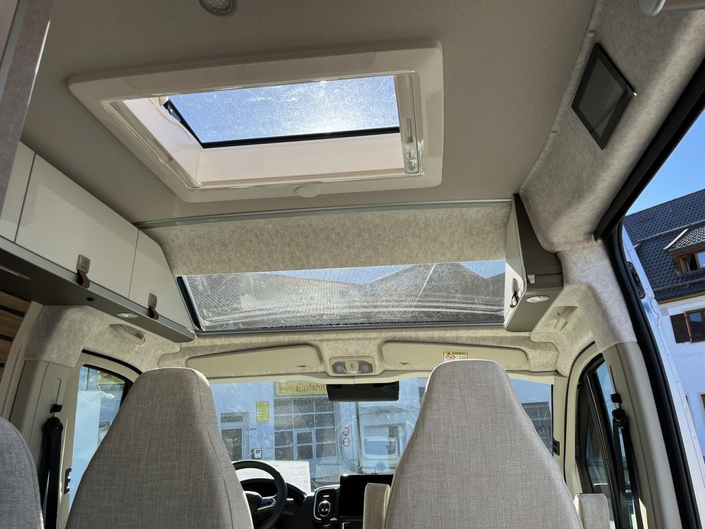 - Wohnkomfort Paket (Skyview Fenster Fahrerhaus inkl. Verdunklung, Ambient-Light-System: Mehr-Ebenen Lichtsystem mit dynamischer und individueller Steuerung der Beleuchtung (inkl. Lichttemperatur) sowie stimmungsvoller Sockelbeleuchtung, Wohnwelt "HOME" (2 Kissen und Stofftasche), Spannbettlaken nach Maß für Heckbetten individuell an Matratzen angepasst, Einlegeboden mit Korkoberfläche)