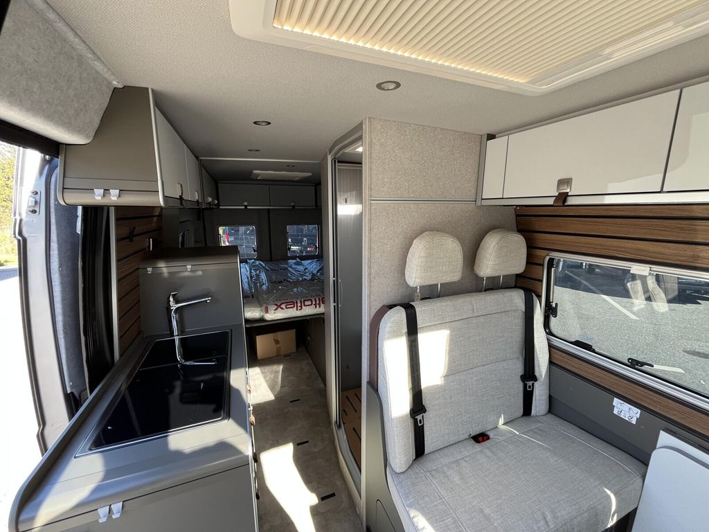 - Wohnkomfort Paket (Skyview Fenster Fahrerhaus inkl. Verdunklung, Ambient-Light-System: Mehr-Ebenen Lichtsystem mit dynamischer und individueller Steuerung der Beleuchtung (inkl. Lichttemperatur) sowie stimmungsvoller Sockelbeleuchtung, Wohnwelt "HOME" (2 Kissen und Stofftasche), Spannbettlaken nach Maß für Heckbetten individuell an Matratzen angepasst, Einlegeboden mit Korkoberfläche)