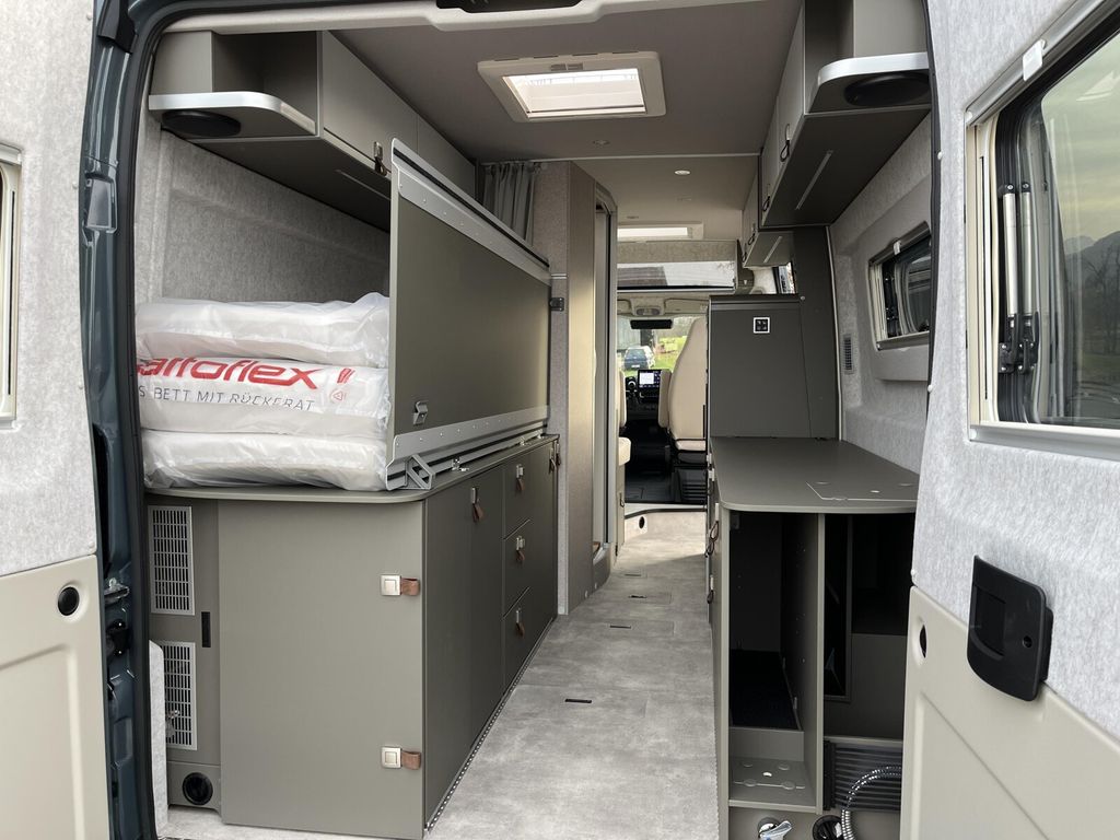 - Wohnkomfort Paket (Skyview Fenster Fahrerhaus inkl. Verdunklung, Ambient-Light-System: Mehr-Ebenen Lichtsystem mit dynamischer und individueller Steuerung der Beleuchtung (inkl. Lichttemperatur) sowie stimmungsvoller Sockelbeleuchtung, Wohnwelt "HOME" (2 Kissen und Stofftasche), Spannbettlaken nach Maß für Heckbetten individuell an Matratzen angepasst, Einlegeboden mit Korkoberfläche)