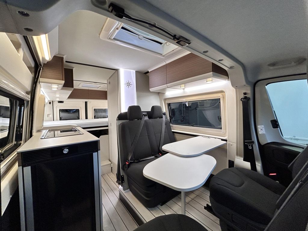 - Columbus Premium Paket (Außendusche warm / kalt inkl. Duschkopf und Saugfuß, Duscheinleger im Yachtdesign für die Nasszelle, Sitzheizung für Vordersitze, Winterpaket (Abwassertank beheizt, Isolierung von Heck-und Schiebetür, Isoliermatte für Hecktür, Isoliermatte für Frontscheibe, zusätzlicher Konvektor im Bereich Fahrerhaus, Fußbodenheizung inkl. beheizter Duschtasse, Plugtronic (Heizbetrieb elektrisch 230V), Teppich Fahrerhaus)