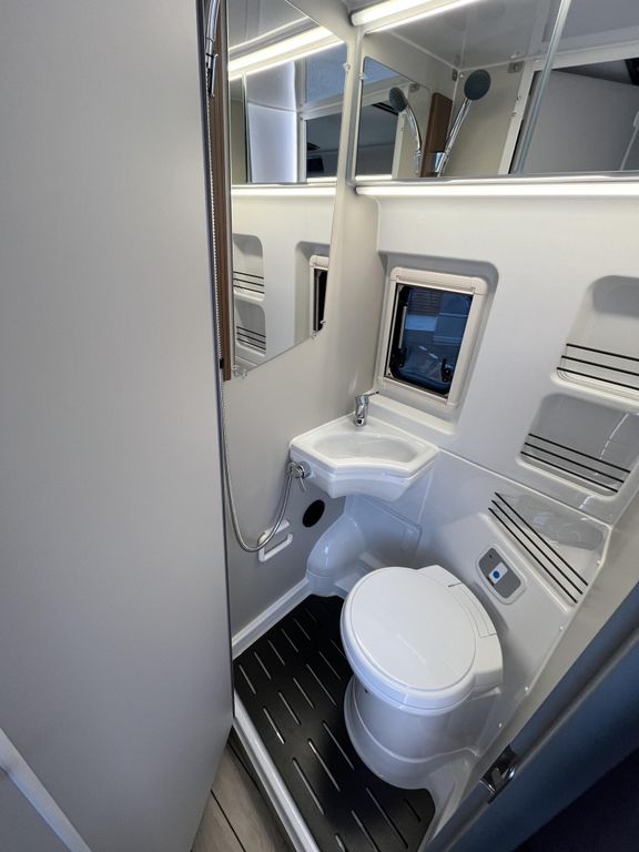 - Columbus Premium Paket (Außendusche warm / kalt inkl. Duschkopf und Saugfuß, Duscheinleger im Yachtdesign für die Nasszelle, Sitzheizung für Fahrer- und Beifahrersitz, Winterpaket (Abwassertank beheizt, Isolierung von Heck-und Schiebetür, Isoliermatte für Hecktür, Isoliermatte für Frontscheibe, zusätzlicher Konvektor im Bereich Fahrerhaus, Fußbodenheizung inkl. beheizter Duschtasse, Plugtronic (Heizbetrieb elektrisch 230V), Teppich Fahrerhaus)