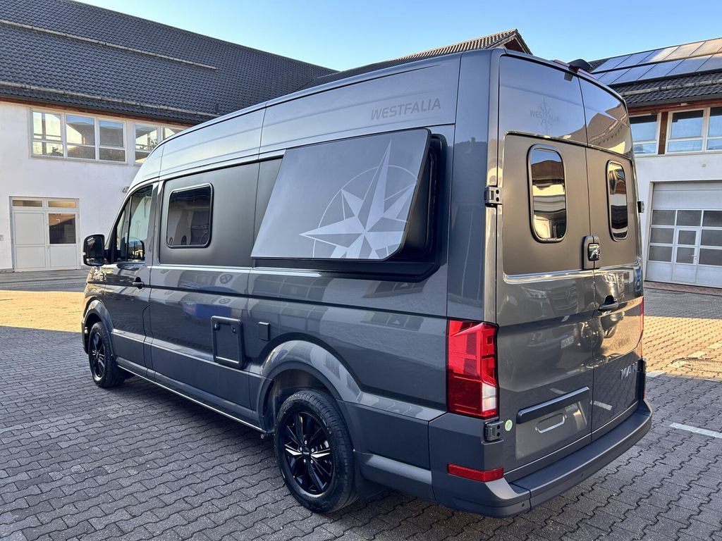 - Westfalia Sven Hedin NEW EDITION Modell 2025 Ausstattungsinhalte (Westfalia SVEN HEDIN NEW EDITION2.0 l EU6 SCR, 120 kW (163 PS), 8-Gang-Automatikgetriebe-> Westfalia Komfortpaket-> Vorbereitung für Anhängevorrichtung-> Schmutzfänger vorn und hinten-> Distanzregelung ACC bis 160 km/h für Automatikgetriebe-> Müdigkeitserkennung-> Spurhalteassistent ? Lane Assist?-> LED-Hauptscheinwerfer u. LED-Tagfahrlicht-> Licht- und Sichtpaket-> ParkPilot, im Front- und Heckbereich-> Beheizbare Scheibenwaschdüsen vorn und Wasserstandsanzeige-> Reifendruckkontrollanzeige (direkt messend)-> Lederlenkrad beheizbar-> Leichtmetallräder in schwarz 17-> großes Dachfenster im Wohnbereich-> Winterpaket-> Vorrüstung SAT und Solar-> Schwenktisch 400 mm-> Markise anthrazit-> 1 zusätzliche 70 Ah AGM Batterie-> Trittstufenbeleuchtung-> Verbundglas-Frontscheibe in Wärmeschutzverglasung, beheizbar-> Schiebetür, rechts, im Lade-/Fahrgastraum,mit Zwischenarretierung zur ÖffnungsbegrenzungSicherheits-Paket-Aktiv :- ACC Stop & Go- Außenspiegel, elektrisch einstell-,beheiz- und anklappbar- Ledermultifunktionslenkrad,beheizbar mit Tiptronic- Nebelscheinwerfer inkl. Abbiegelicht- Spurhalteassistent plus Stauassistent- Spurwechselassistent- Totwinkelwarnung beidseitig undAnfahrwarnungMAN Media VAN Business Paket inkl.Navigation :- MAN Media VAN Business Paket- MAN Connect (Rufdienste/ InVehicleApps / Navigation endgeräteabhängig),mit OCU high- MAN Media Van Navigation Business- Mit Sprachsteuerung- Navigationssystem (Baseline))
