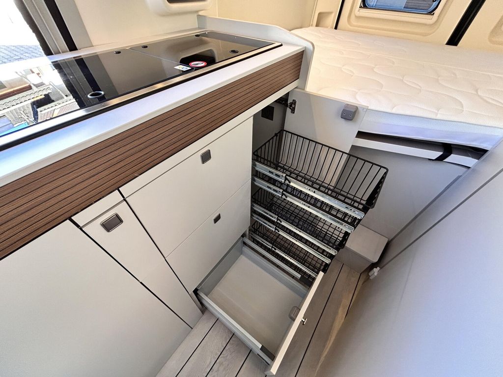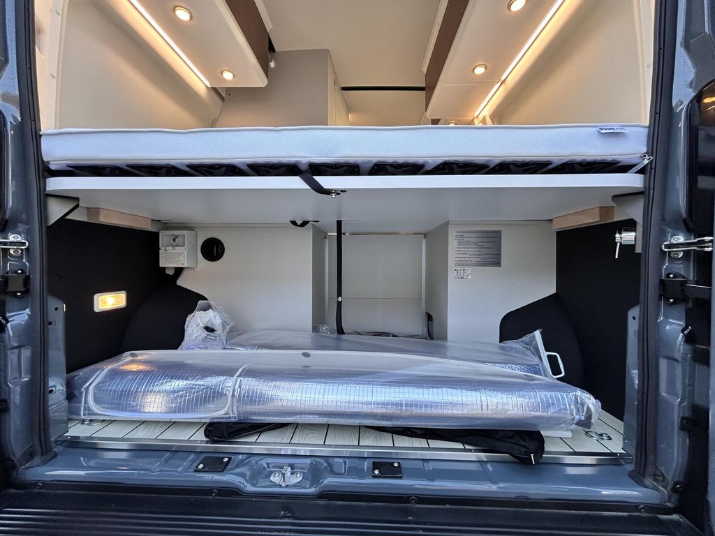 - Columbus Premium Paket (Außendusche warm / kalt inkl. Duschkopf und Saugfuß, Duscheinleger im Yachtdesign für die Nasszelle, Sitzheizung für Vordersitze, Winterpaket (Abwassertank beheizt, Isolierung von Heck-und Schiebetür, Isoliermatte für Hecktür, Isoliermatte für Frontscheibe, zusätzlicher Konvektor im Bereich Fahrerhaus, Fußbodenheizung inkl. beheizter Duschtasse, Plugtronic (Heizbetrieb elektrisch 230V), Teppich Fahrerhaus)