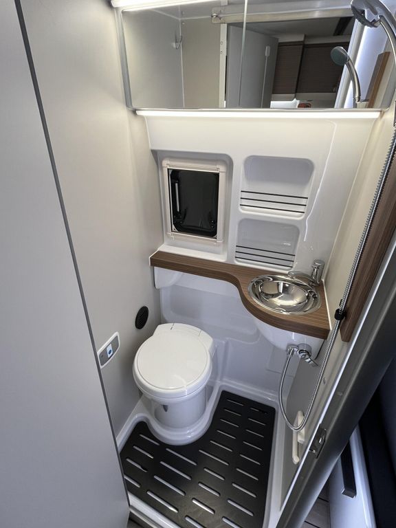 - Columbus Premium Paket (Außendusche warm / kalt inkl. Duschkopf und Saugfuß, Duscheinleger im Yachtdesign für die Nasszelle, Sitzheizung für Vordersitze, Winterpaket (Abwassertank beheizt, Isolierung von Heck-und Schiebetür, Isoliermatte für Hecktür, Isoliermatte für Frontscheibe, zusätzlicher Konvektor im Bereich Fahrerhaus, Fußbodenheizung inkl. beheizter Duschtasse, Plugtronic (Heizbetrieb elektrisch 230V), Teppich Fahrerhaus)