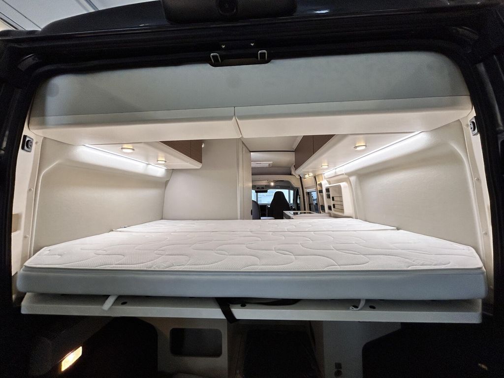 - Bett vorn an Sitzbank integriert mit Kaltschaummatratze und atmungsaktivem Bezug ca. 900 x 1800 mm