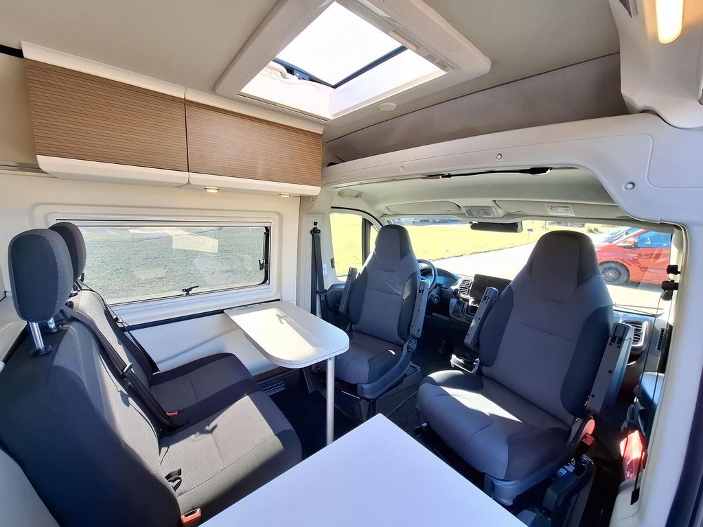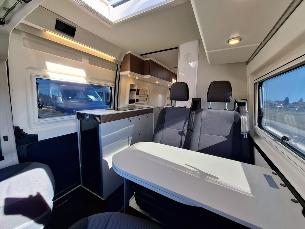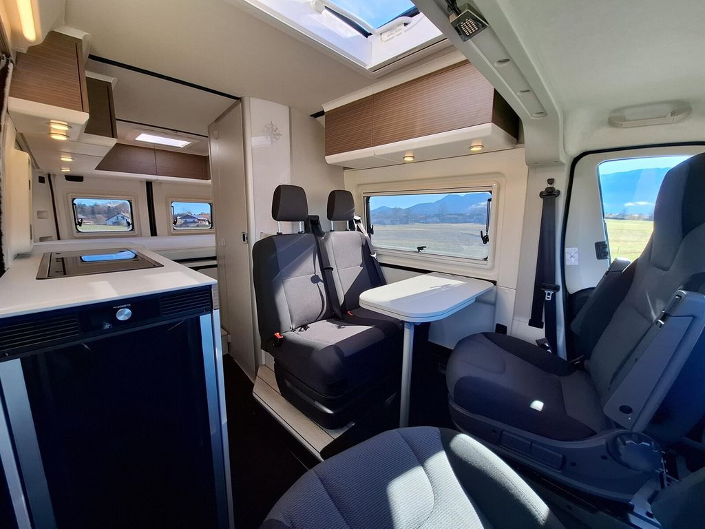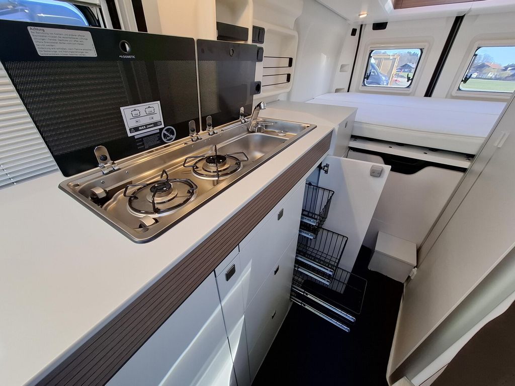 - Columbus Premium Paket (Außendusche warm / kalt inkl. Duschkopf und Saugfuß, Duscheinleger im Yachtdesign für die Nasszelle, Sitzheizung für Fahrer- und Beifahrersitz, Winterpaket (Abwassertank beheizt, Isolierung von Heck-und Schiebetür, Isoliermatte für Hecktür, Isoliermatte für Frontscheibe, zusätzlicher Konvektor im Bereich Fahrerhaus, Fußbodenheizung inkl. beheizter Duschtasse, Plugtronic (Heizbetrieb elektrisch 230V), Teppich Fahrerhaus)