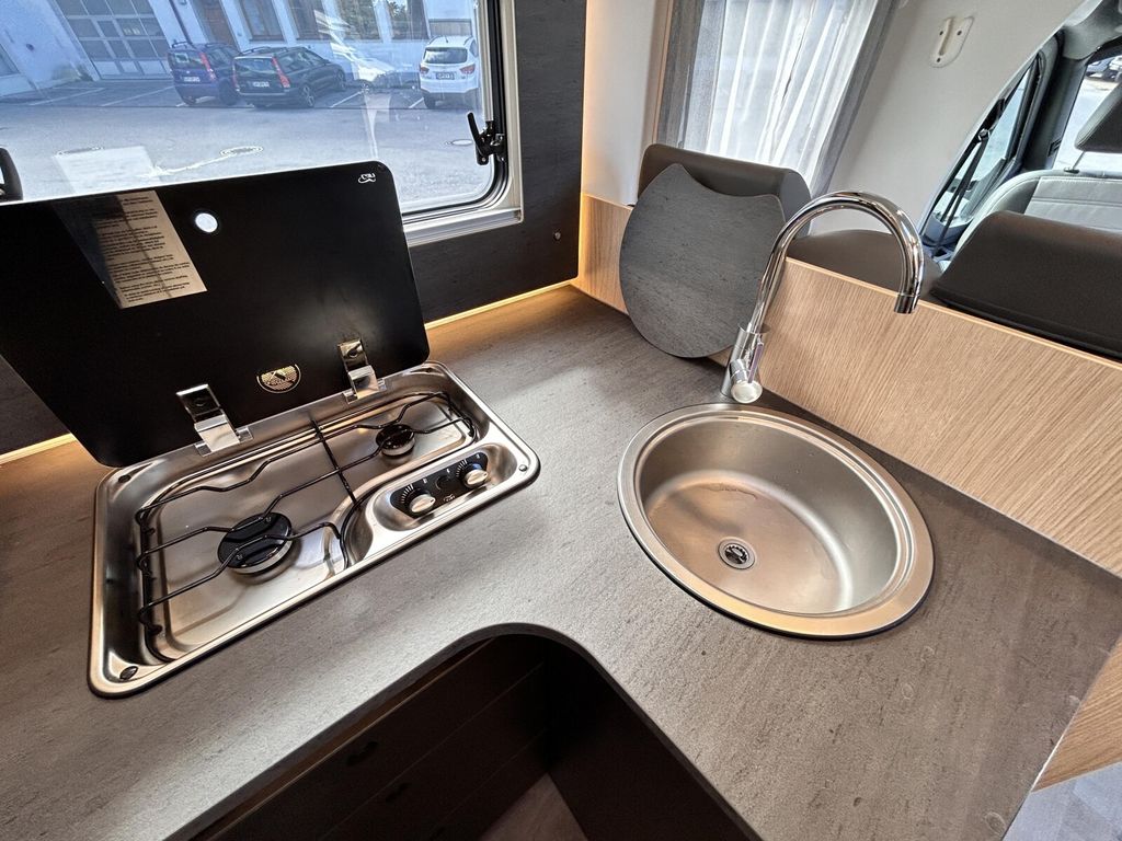 - Adventure Edition (Ford Transit 3.500 kg - 2,0l TDCi - 96 kW (130 PS) - Euro VI E - 6-Gang-Schaltgetriebe, Obsidian Schwarz, Seitenwand Silber Glattblech, 16" Alufelgen schwarz, Paket One Black (Markise, Fahrradträger 3-fach), Wohnwelt Adventure, Adventure Abklebung, Großer Kühlschrank 156 l mit separatem Frosterfach 29 l, Rahmenfenster, Fenster in T-Haube, Design Applikation Heck, 2. Außenstauraumklappe (Größe modellabhängig), Bettenumbau Einzelbett zu Doppelbett, Bettenumbau im Bereich Sitzgruppe (T 690 L), Basic Paket Teilintegrierte (Bridge Light, Komfort Eingangstür mit Fenster, Fliegengittertür (einteilig), Panormadachhaube über Küche, Klarglasdachhaube 40x40, Kabelvorbereitung für Rückfahrkamera), Chassis Paket (Klimaanlage inkl. Staub- und Pollenfilter, Handschuhfach mit Deckel, zusätzlich abschließbar, Stoßfänger lackiert, Nebelscheinwerfer, Scheinwerfer mit statischem Abbiegelicht, Seitenschutzleisten in Wagenfarbe lackiert))