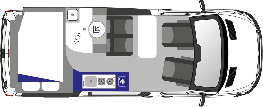 - Westfalia Plus Paket (Dimmbares LED Ambiente Lichtpaket: LED-Leuchtstreifen im Bereich Dachhimmel, LED-Leuchtstreifen an Lichtpanel Nasszelle, LED-Ambientelicht an Fensterrahmen vorn links an der Sitzbank, Fliegenschutztür, Teppichset Fahrerhaus, Loungefunktion Sitzbank, Außendusche warm / kalt inkl. Duschkopf und Saugfuß, Saugfußhalter für Außennutzung des Tisches, Elektrische Zuziehhilfe Schiebetür rechts)