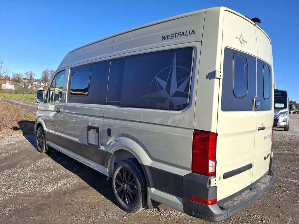 - Westfalia Sven Hedin NEW EDITION Modell 2025 Ausstattungsinhalte (Westfalia SVEN HEDIN NEW EDITION2.0 l EU6 SCR, 120 kW (163 PS), 8-Gang-Automatikgetriebe-> Westfalia Komfortpaket-> Vorbereitung für Anhängevorrichtung-> Schmutzfänger vorn und hinten-> Distanzregelung ACC bis 160 km/h für Automatikgetriebe-> Müdigkeitserkennung-> Spurhalteassistent ?, Lane Assist?,-> LED-Hauptscheinwerfer u. LED-Tagfahrlicht-> Licht- und Sichtpaket-> ParkPilot, im Front- und Heckbereich-> Beheizbare Scheibenwaschdüsen vorn und Wasserstandsanzeige-> Reifendruckkontrollanzeige (direkt messend)-> Lederlenkrad beheizbar-> Leichtmetallräder in schwarz 17-> großes Dachfenster im Wohnbereich-> Winterpaket-> Vorrüstung SAT und Solar-> Schwenktisch 400 mm-> Markise anthrazit-> 1 zusätzliche 70 Ah AGM Batterie-> Trittstufenbeleuchtung-> Verbundglas-Frontscheibe in Wärmeschutzverglasung, beheizbar-> Schiebetür, rechts, im Lade-/Fahrgastraum,mit Zwischenarretierung zur ÖffnungsbegrenzungSicherheits-Paket-Aktiv :- ACC Stop & Go- Außenspiegel, elektrisch einstell-,beheiz- und anklappbar- Ledermultifunktionslenkrad,beheizbar mit Tiptronic- Nebelscheinwerfer inkl. Abbiegelicht- Spurhalteassistent plus Stauassistent- Spurwechselassistent- Totwinkelwarnung beidseitig undAnfahrwarnungMAN Media VAN Business Paket inkl.Navigation :- MAN Media VAN Business Paket- MAN Connect (Rufdienste/ InVehicleApps / Navigation endgeräteabhängig),mit OCU high- MAN Media Van Navigation Business- Mit Sprachsteuerung- Navigationssystem (Baseline))
