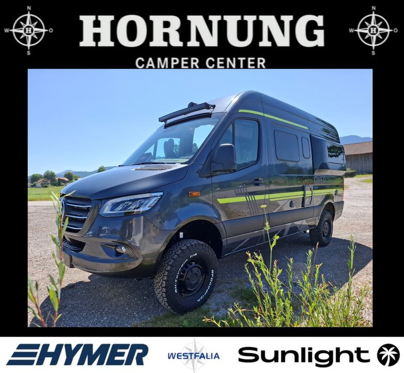 - Grand Canyon S CrossOver Serienausstattung (Mercedes-Benz Sprinter 3,88 t - 419 CDI - 140 KW/190 PS Euro VI-E, Allradantrieb permanent inkl. Heckleuchten in LED-Technik, Metallic Tenoritgrau, Automatikgetriebe 9G-TRONIC inkl. Hold-Funktion (x19 CDI), Kühlergrill Chrom, LED-High-Performance-Scheinwerfer, Nebelscheinwerfer mit Abbiegelicht, Stoßfänger und Kühlergrillrahmen in Wagenfarbe lackiert, 16" Stahlfelgen (schwarz) mit Stollenbereifung (All-Terrain), Elektrische Schließhilfe Schiebetür rechts, Ablage für Smartphones inkl. wireless charging Funktion und Ladestandsanzeige, Ladepaket Instrumententafel mit 2 x USB-C Stecker 5V / 1x12V-Steckdose, Vollautomatische Klimaanlage THERMOTRONIC, Lederlenkrad (bei Automatikgetriebe), Windschutzscheibe beheizbar, Navigation & Smartphone-Integration für MBUX-System, Park-Paket mit 360° Kamera, Aktiver Abstands-Assistent DISTRONIC PLUS inkl. Lenkrad-Multifunktionstasten, Fernlicht-Assistent, Totwinkel-Assistent, Verkehrszeichen-Assistent Elektrische Offroad-Trittstufe (einklappbar) für mehr Bodenfreiheit, Markise (anthrazit) mit dimmbarer LED-Beleuchtung und Adapter, 325 x 250 cm, Motor-/Unterfahrschutz, 44" LED-Lightbar über dem Fahrerhaus, Designbeklebung Crossover, Ambient-Light-System: Mehr-Ebenen Lichtsystem mit dynamischer und individueller Steuerung der Beleuchtung (inkl. Lichttemperatur) sowie stimmungsvoller Sockelbeleuchtung, Spannbettlaken nach Maß für Heckbetten individuell an Matratzen angepasst, Wohnwelt "HOME" (2 Kissen und Stofftasche), Einlegeboden mit Korkoberfläche, Zweite Toilettenkassette inkl. Halterung, 2 Klappstühle und Tisch inkl. Befestigung, Werkzeug-Set (Klappspaten, Axt) im Heckstauraum 6 kW Diesel-Warmluftheizung mit 10l Warmwasserboiler, Lutdrucksensor (Höhenkit) und 1.800 Watt Elektroheizstab, HYMER-Smart-Battery-System 2.0 - Zusätzlich 3 x 80 Ah LFP (Gesamtleistung 320 Ah), Solaranlage 1 x 95 Watt mit Solarladeregler (MPPT) und Anzeige, Wasserfilter für Frischwassersystem)