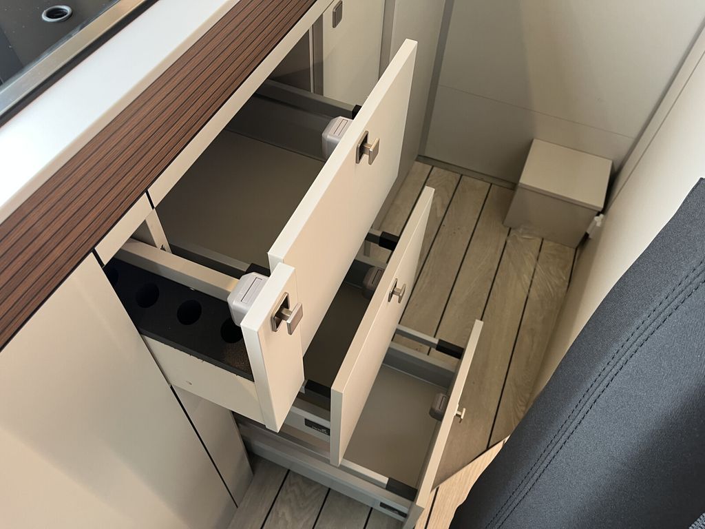 - Columbus Premium Paket (Außendusche warm / kalt inkl. Duschkopf und Saugfuß, Duscheinleger im Yachtdesign für die Nasszelle, Sitzheizung für Vordersitze, Winterpaket, Teppich Fahrerhaus)