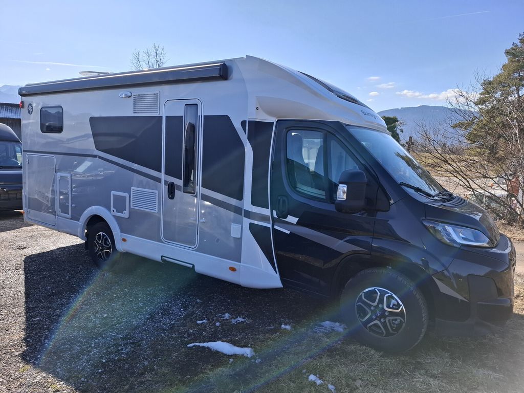 - Adventure Edition (Fiat Ducato 3.500 kg - 2.2 Multijet - 103 kW / 140 PS Euro 6 - 6-Gang-Schaltgetriebe, Chassisfarbe Weiß, Stoßfänger lackiert, 16" Alufelgen Original FIAT für Light-Chassis, Wohnwelt Adventure, Adventure Abklebung, Fenster in T-Haube, Rahmenfenster, Design Applikation Heck, 2. Außenstauraumklappe (Größe modellabhängig)(nicht T 58), Großer Kühlschrank 156 l mit separatem Frosterfach 29 l (nicht T 58), Bettenumbau im Bereich Sitzgruppe (T 69 LC), Bettenumbau Einzelbett zu Doppelbett (nicht T 58), Paket One Black (Markise, Fahrradträger 3-fach), Basic Paket Teilintegrierte (Bridge Light, Komfort Eingangstür mit Fenster, Fliegengittertür (einteilig), Panormadachhaube über Küche, Klarglasdachhaube 40x40, Kabelvorbereitung für Rückfahrkamera), Style Paket 1 (Lenkrad & Schaltknauf in Lederausführung, Luftauslässe mit Applikationen Silber (Techno-Trim), Kühlergrill schwarz glänzend, Skid Plate Schwarz, Scheinwerfer mit schwarzem Rahmen))