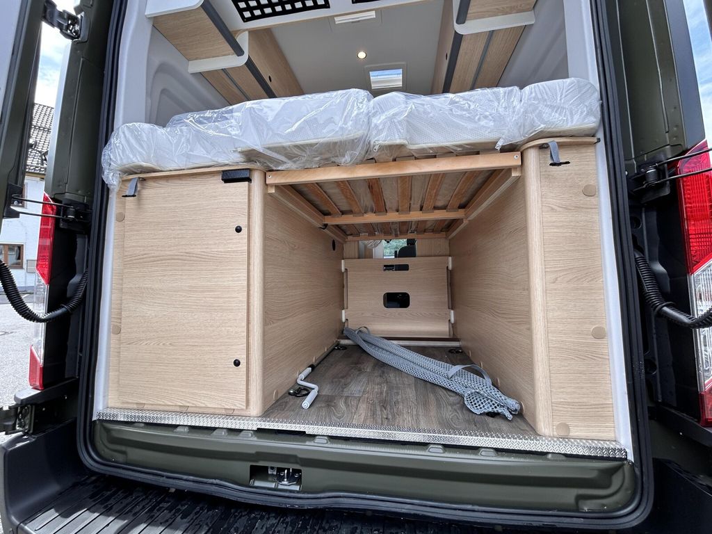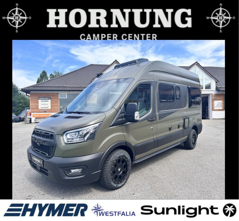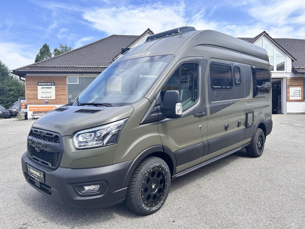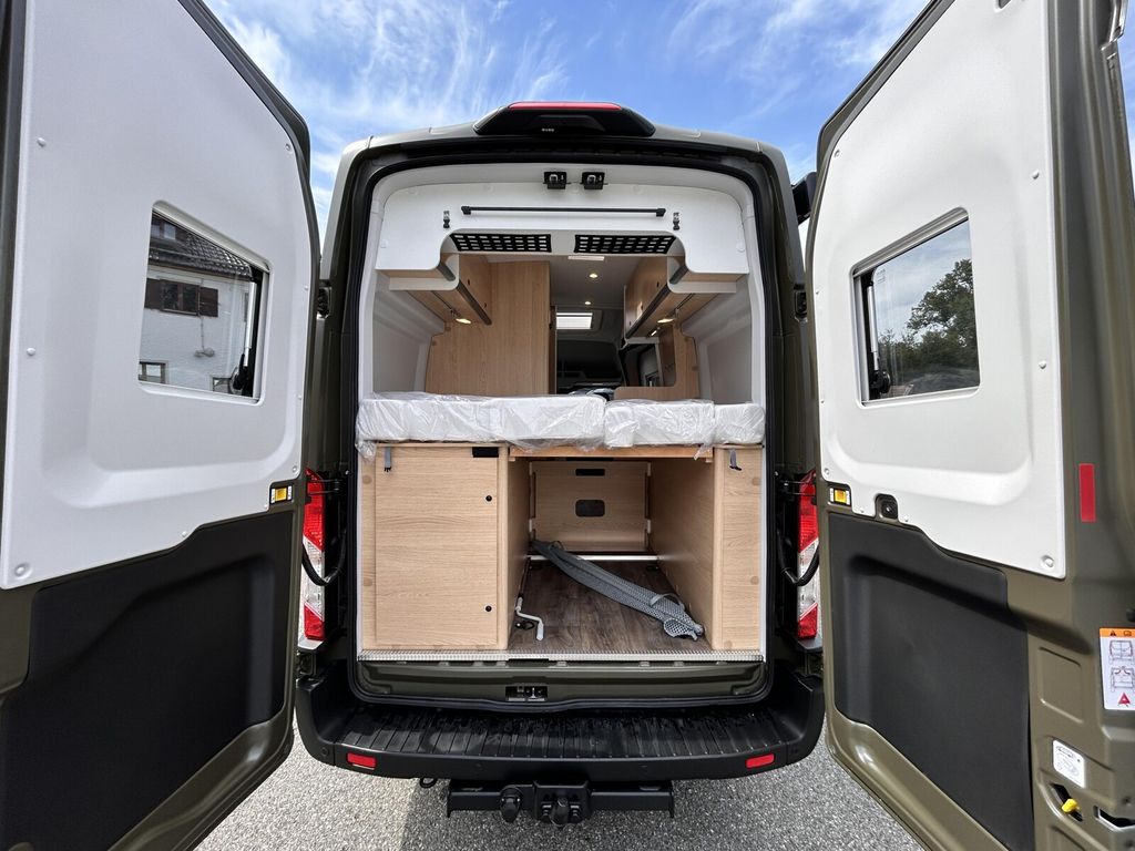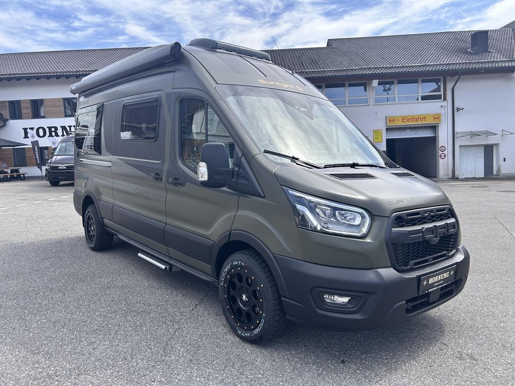 - Ford Transit 3.500 kg | 2,0l TDCi | 122 kW | 165 PS | EURO 6 | 6-Gang-Schaltgetriebe | Allradantrieb, Yellow Olive (Grün matt), 17" Offroadbereifung Delta, Trail Kühlergrill, Seitliche Schlaferweiterung mittels Verbreiterungsbacken im Heck, Beide Hecktüren mit Aufstellfenster (inkl. Rollo), Beklebung CLIFF 4x4 Green Trek, Wohnwelt Adventure, Dachstauschrank Heck umlaufend, Rahmenfenster, Markise 3,5 m (schwarz), Panoramadachhaube 70 x 50 cm, Duschausstattung, Fenster im Bad, Kleiderstangen in der Nasszelle, Breite Einstiegsstufe, Drehplatte für Tischerweiterung an der Sitzgruppe, Klimaanlage inkl. Staub- und Pollenfilter, Stoßfänger lackiert, Nebelscheinwerfer, Scheinwerfer mit statischem Abbiegelicht, beheizbare Außenspiegel